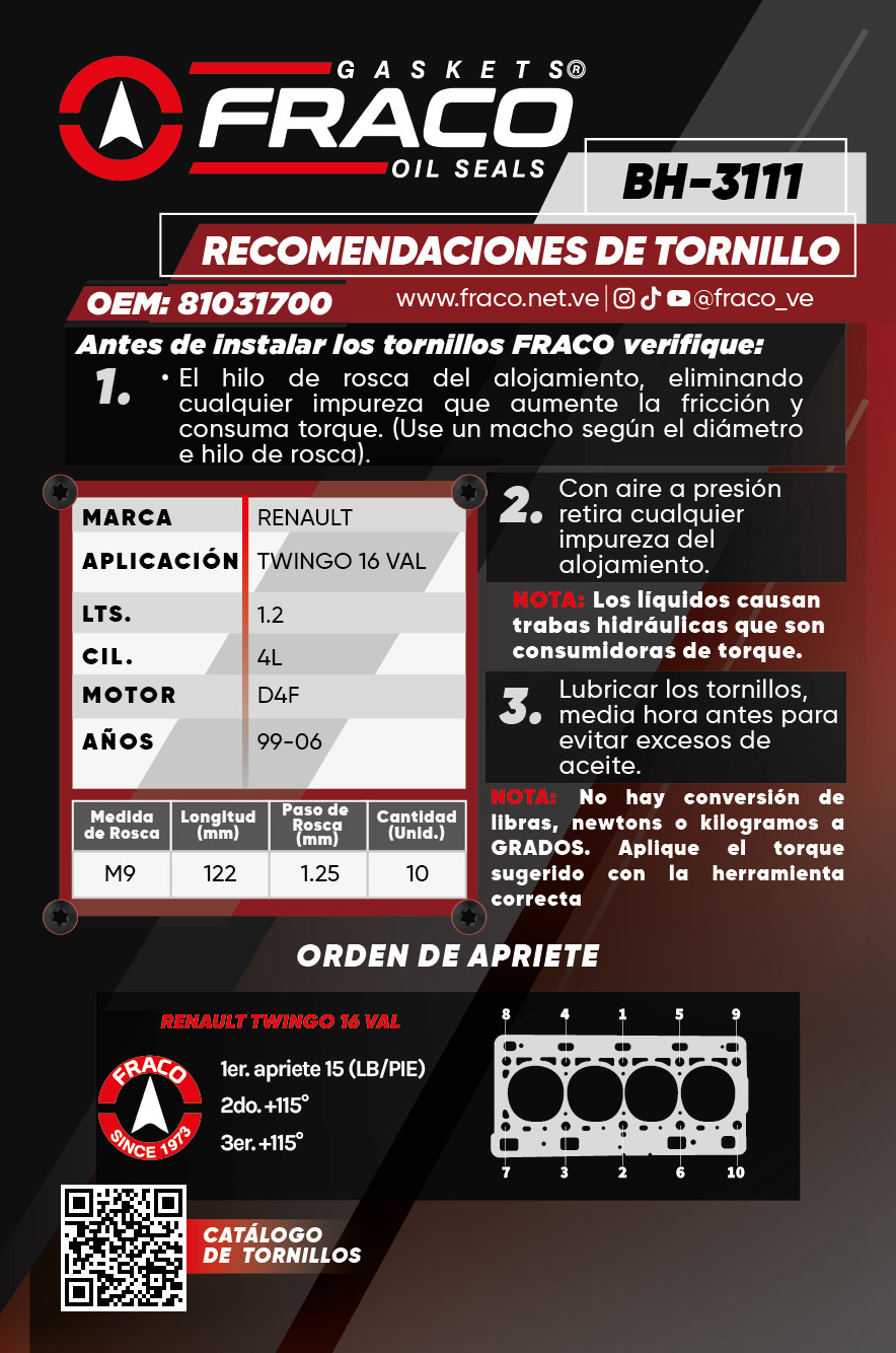 Inicio / Tornillos / Renault / BH-3111 BH-3111 TWINGO 16 VAL Categorías: Renault, Tornillos Descripción Descripción Motor: D4F Año: 99-06 Litros: 1,2 Lts. Cilindro: 4L Productos relacionados BH-7502 Leer más BH-1289 Leer más BH-8701 Leer más BH-1274 Leer más
